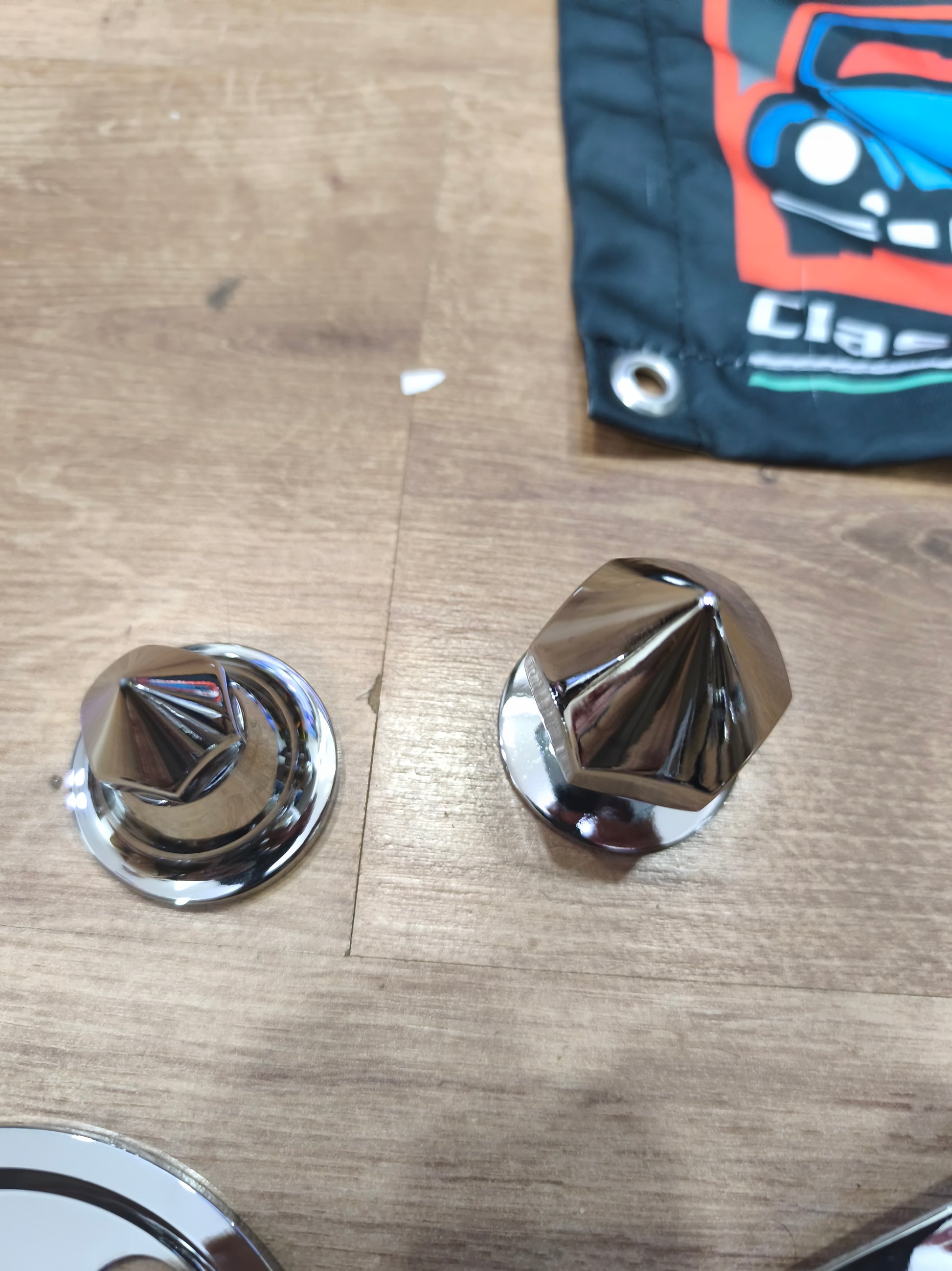 Chrome bolt for pyramid-type alternator pulley.